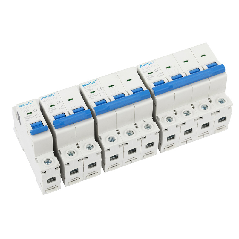 Sontuoec és un dels proveïdors/fabricants xinesos especialitzats en la producció de petits electrodomèstics elèctrics competitius Structure C65 Structure STB1-63 Sèrie Miniatura Circuit Breaker MCB té les característiques de l'estructura avançada, el rendiment fiable, la capacitat de trencament elevada, l'aspecte elegant i la seva closca i les seves parts estan fabricades amb material amb resistència a l'impacte, una característica forta de flama.