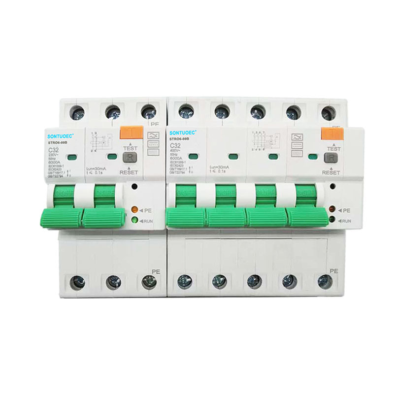 Protecció del curtcircuit: quan es produeix un curtcircuit en un circuit, el RCBO STRO6-80B tallarà ràpidament el circuit per evitar que el corrent de curtcircuit causi danys greus al circuit i als equips.