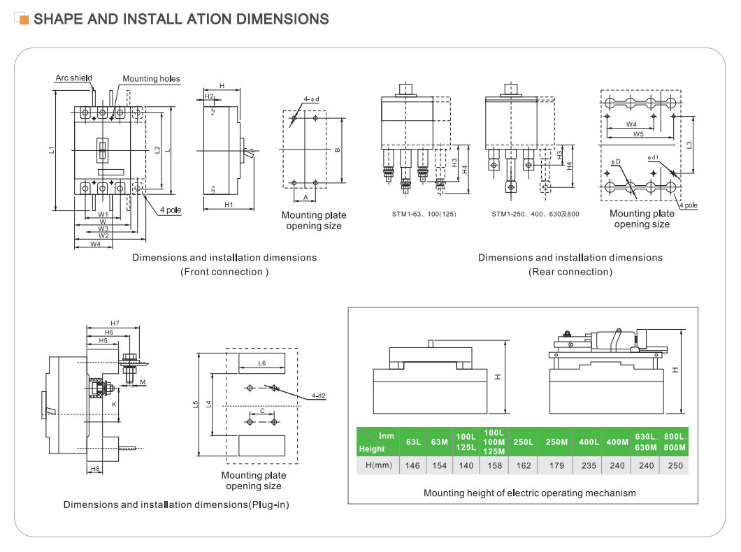 Usos: els interruptors automàtics de caixa modelada elèctrica s'utilitzen àmpliament en sistemes elèctrics en camps residencials, comercials, industrials i de transport. En l'àmbit residencial, s'utilitza per protegir la seguretat dels circuits domèstics i dels equips elèctrics; en l'àmbit comercial, s'utilitza per protegir els sistemes elèctrics de grans edificis i locals comercials; en l'àmbit industrial, s'utilitza per controlar i protegir el funcionament segur d'equips i màquines de fàbrica; en el camp del transport, s'utilitza per protegir el funcionament estable dels semàfors, senyals de ferrocarril i altres equips.