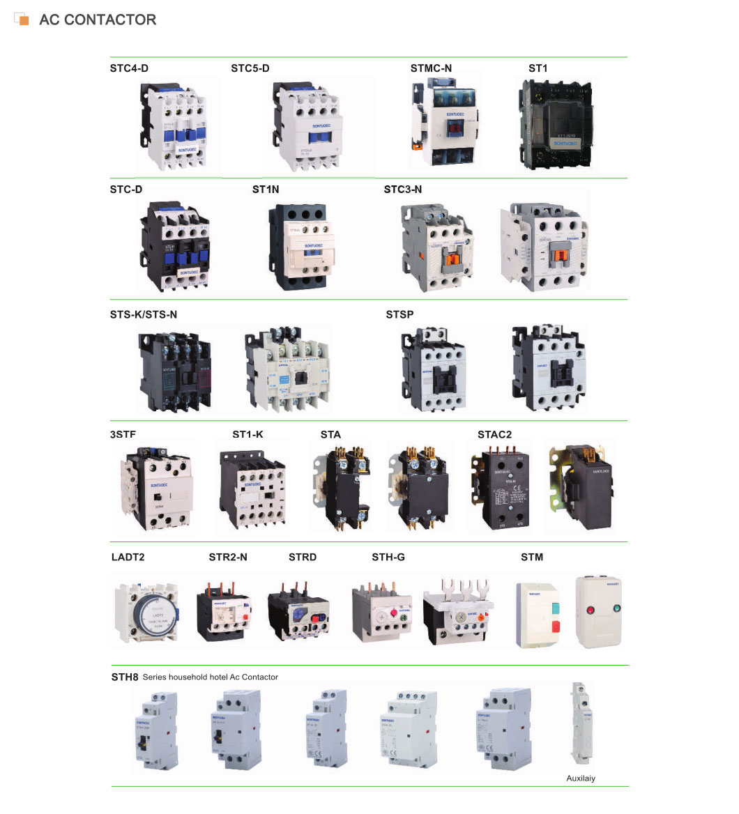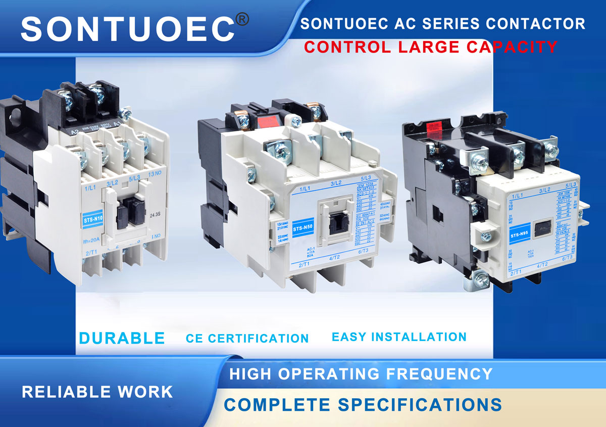 Aquesta sèrie STS-N95 CA Contactor 220V, 380V 3PSONON és àmpliament utilitzada en automatització industrial, sistemes de potència i construcció. En particular, els contactors s’utilitzen àmpliament quan es requereix el control de motors elèctrics de gran capacitat, equips d’il·luminació i línies de transmissió d’energia.