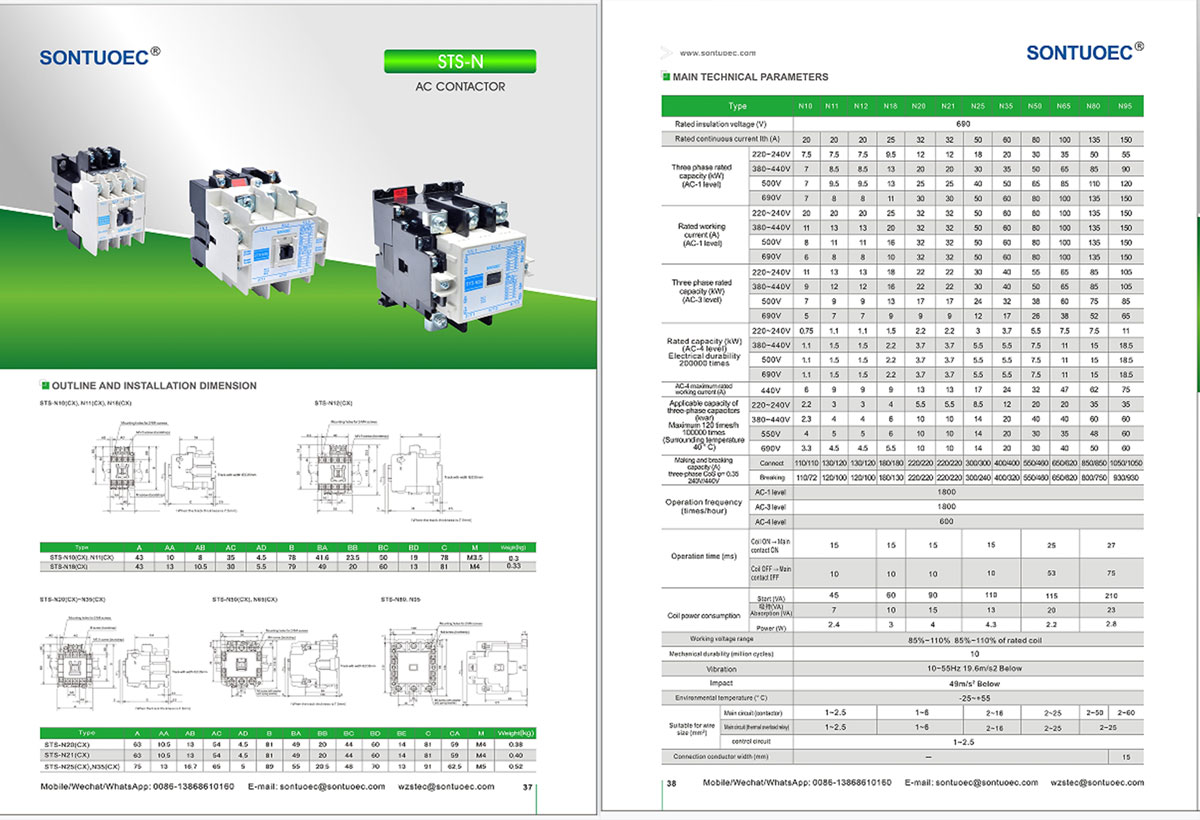 Sontuoec és un dels proveïdors/fabricants xinesos especialitzats en la producció de diversos electrodomèstics elèctrics STS-N95 Sèrie AC Contactor 220V 220V, 380V 3PSONON és adequat per utilitzar en els circuits la tensió nominal de fins a 660V AC 50Hz o 60Hz, amb un corrent classificat fins a 95a, per fer i trencar, comencant freqüentment i controlant el motor de CA. Combinat amb el bloc de contacte auxiliar, el retard del temporitzador i el dispositiu d’intercanvi de la màquina, etc. Amb el relé tèrmic, es combina a l’entrant electromagnètic. El contactor es produeix segons IEC 60947-4-1.