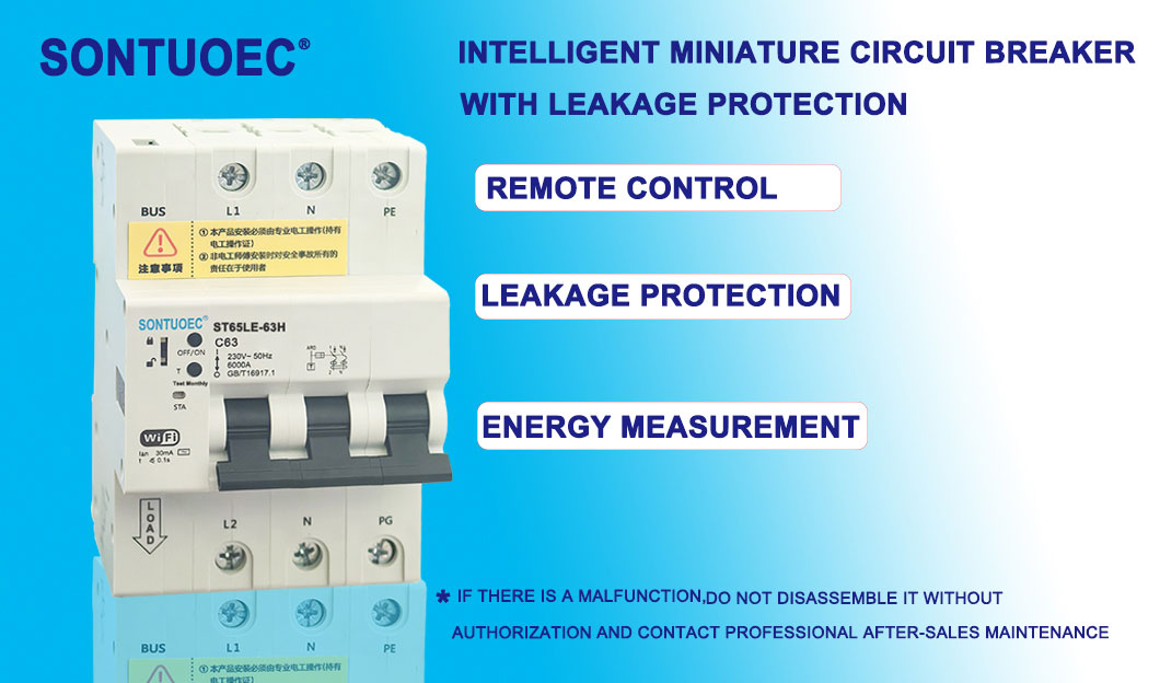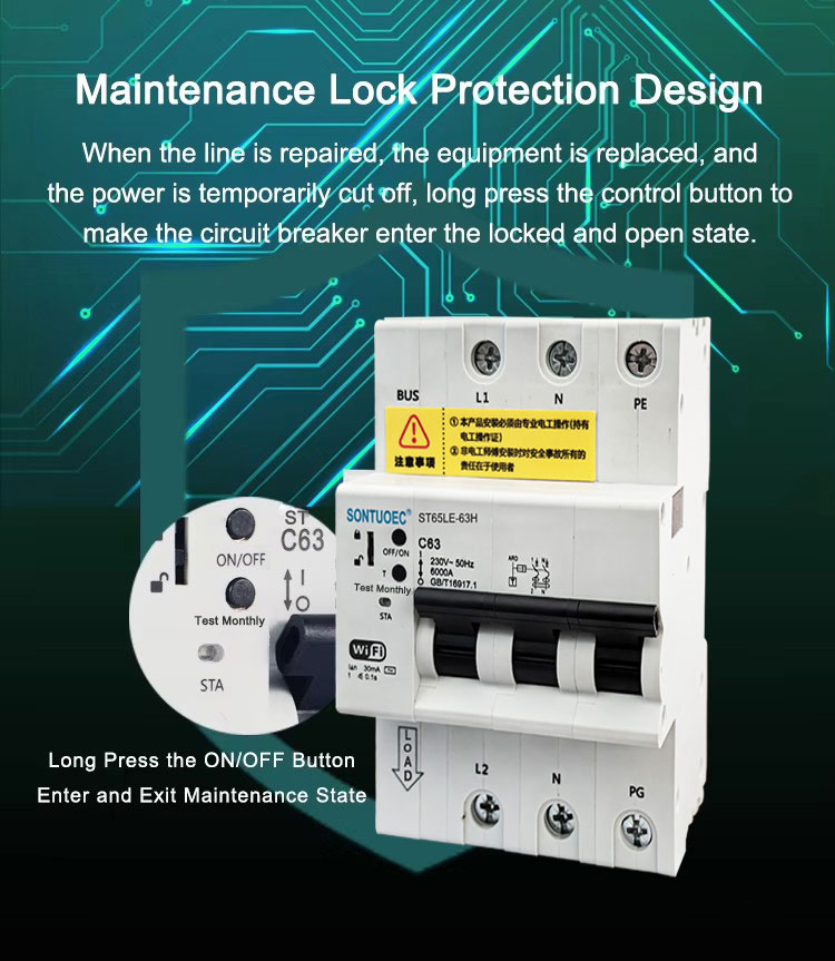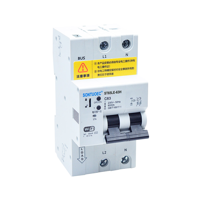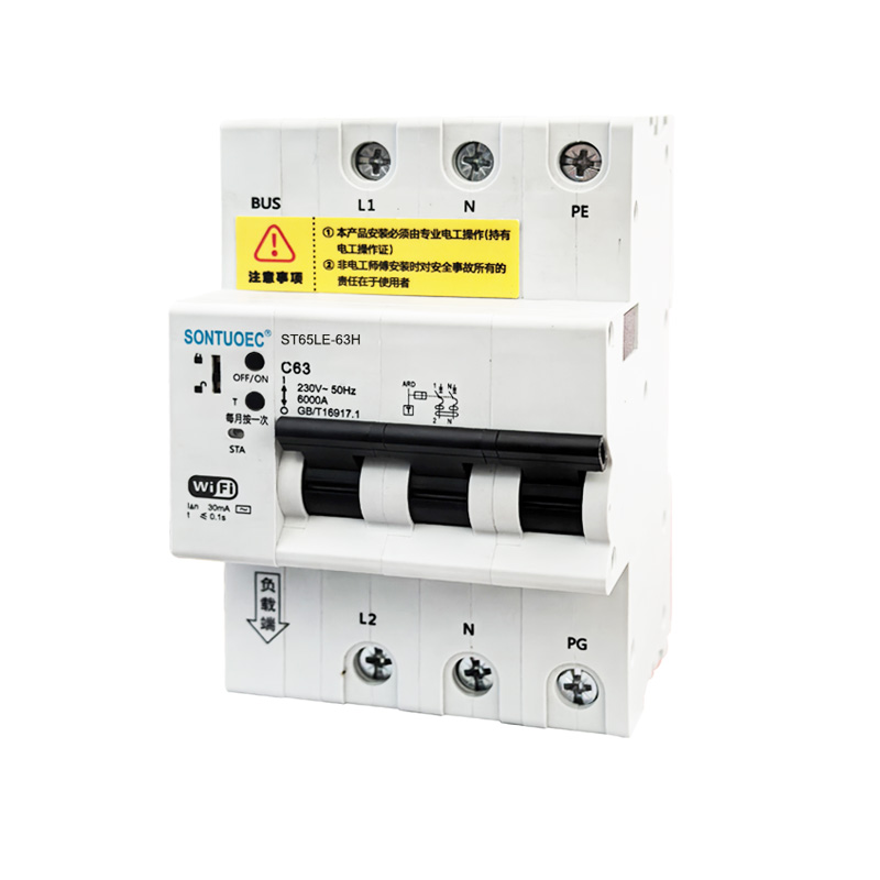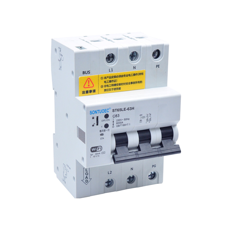 Aquest interruptor de circuit intel·ligent RCBO de sèrie WiFi 4G Tuya ST65LE-63H és adequat per a un circuit de 50Hz/60Hz, 230/400V 0 ~ 125A que té la funció com ara protecció de sobrecàrrega, protecció de curtcircuit i protecció de fuites. Mentrestant, aquest interruptor de circuit de resclosió intel·ligent té la funció com a control de comandament global a nivell mundial per un telèfon mòbil intel·ligent.